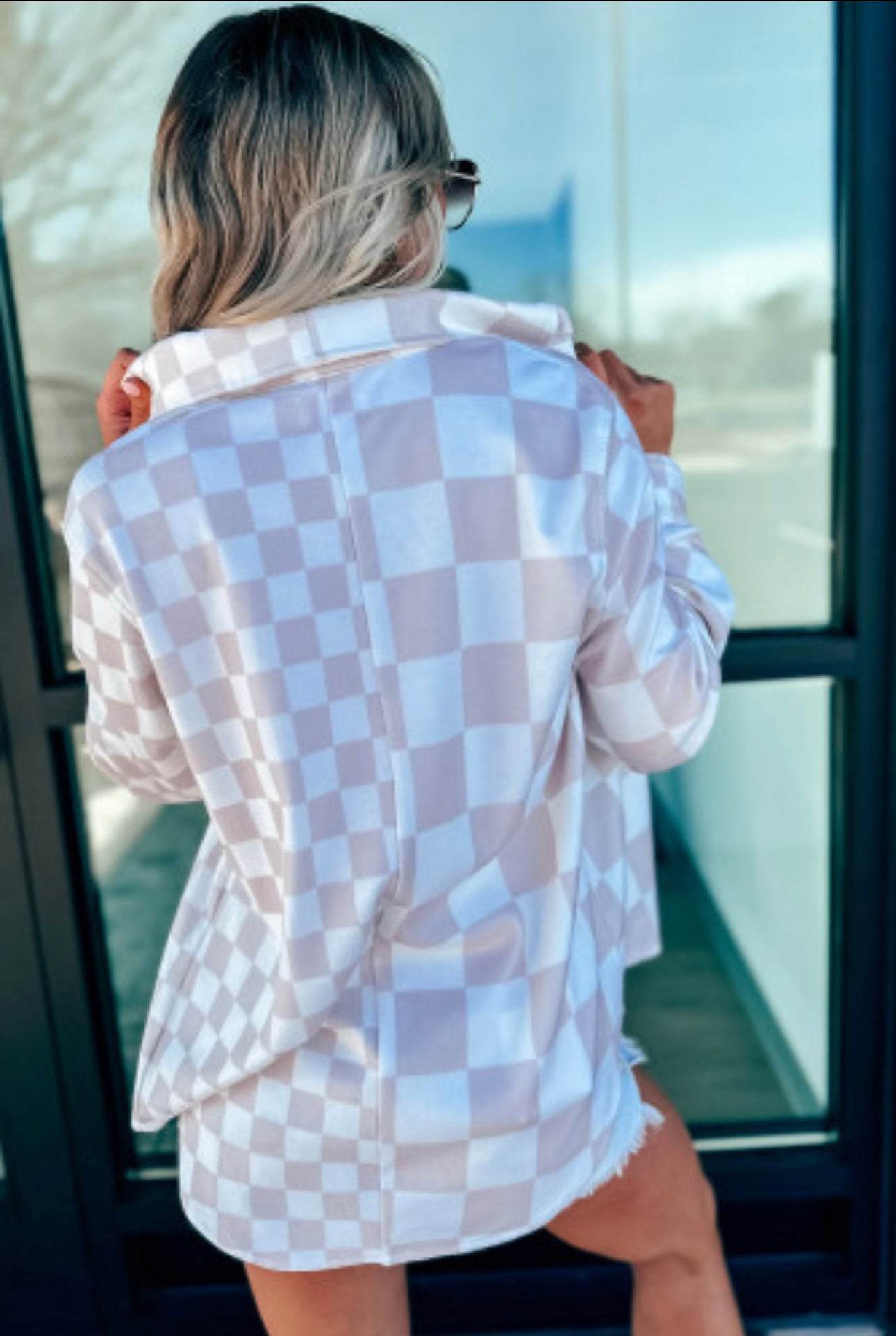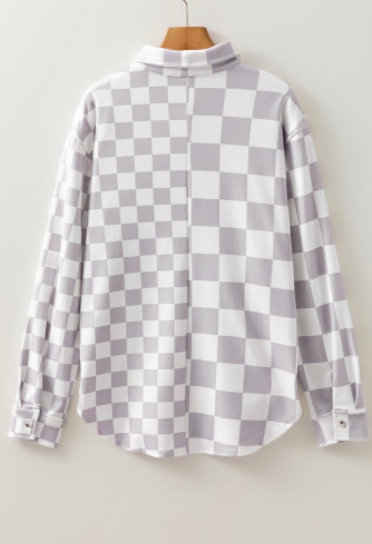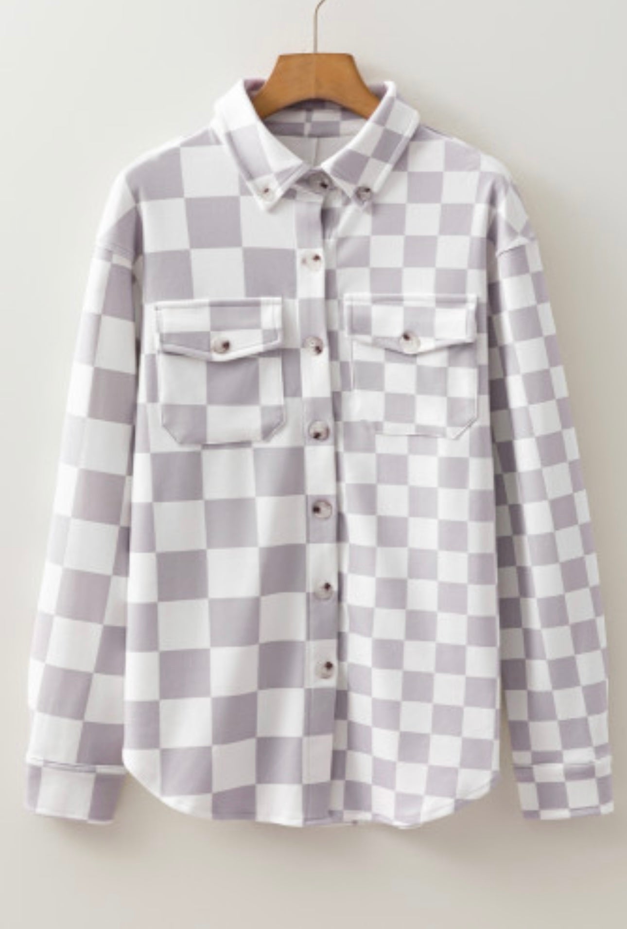 This versatile shacket is perfect for layering or wearing as a top. Stylish checkerboard design for a trendy look. Functional flap pockets for added convenience. Button front closure is designed for easy on-and-off.
